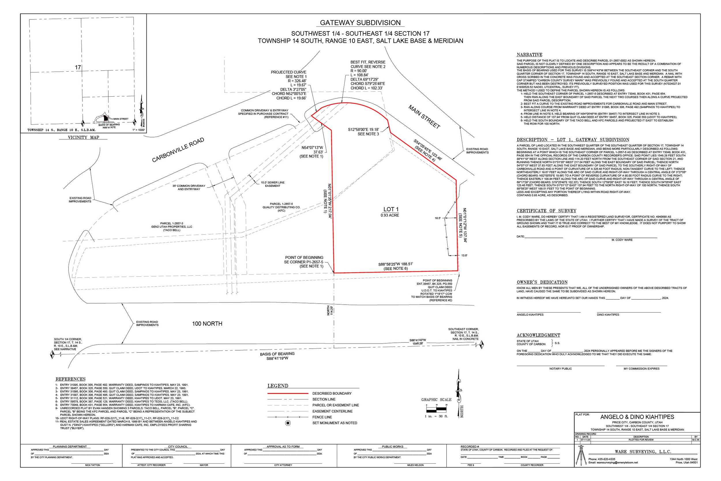 Gateway Subdivision sits in the heart of Price City’s highway business district. The lot is zoned Commercial. The area is characterized by commercial business lots ranging from convenience, lodging, fast food, and more. This lot sits across the street from